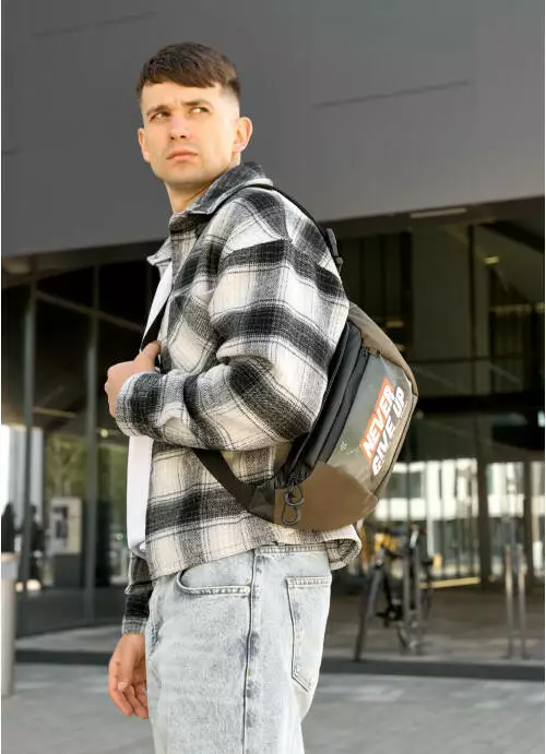 Большая мужская поясная сумка бананка Sambag DynamicDartII NEVER GIVE UP