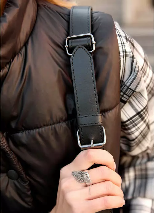 • Подтяжки. Плечевой ремень из текстиля надежно пришит к кожаным окончаниям. Длина регулируется с помощью фастекса и пластикового регулятора.