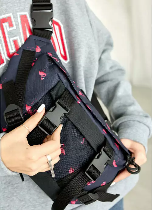 Большая женская поясная сумка бананка Sambag DynamicDart принт "Фламинго"