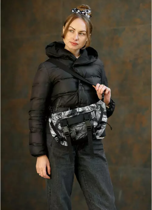 Большая женская поясная сумка бананка Sambag DynamicDart принт "Palm"
