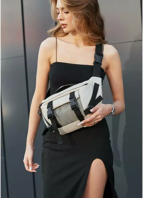 Большая женская поясная сумка бананка Sambag DynamicDart серая