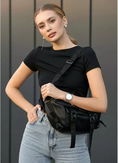 Большая женская сумка бананка Sambag DynamicDart черная