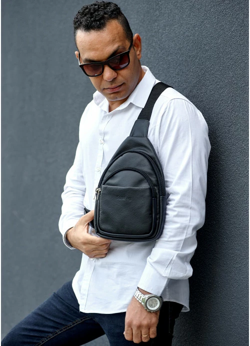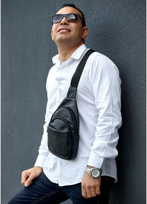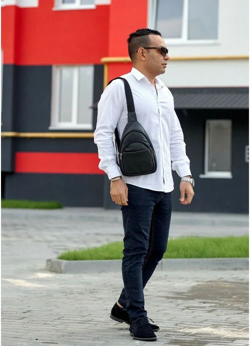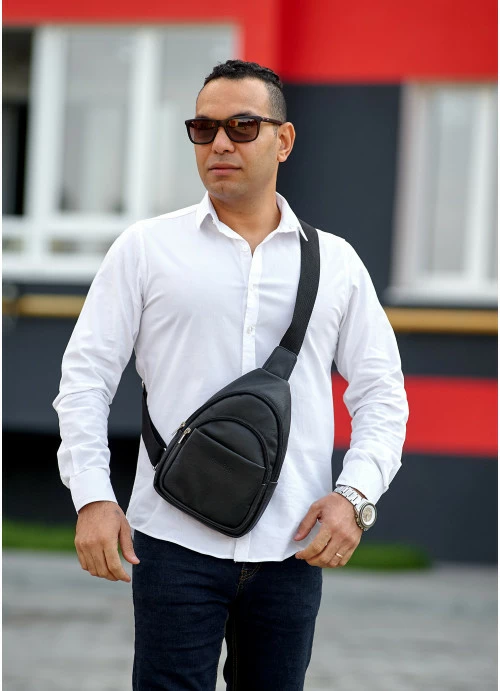 Мужская кожаная сумка слинг через плечо Sambag Brooklyn черная