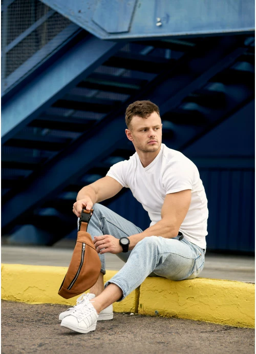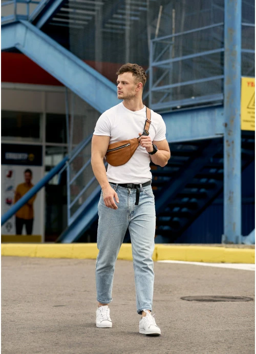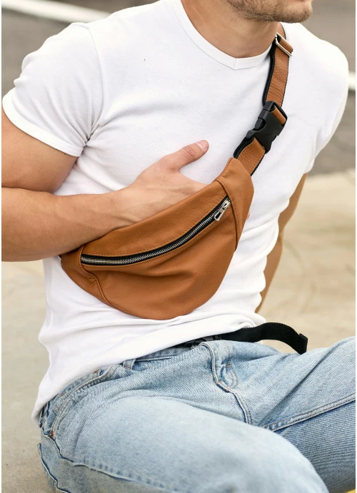 Мужская поясная сумка бананка Sambag Soho натуральная рыжая кожа