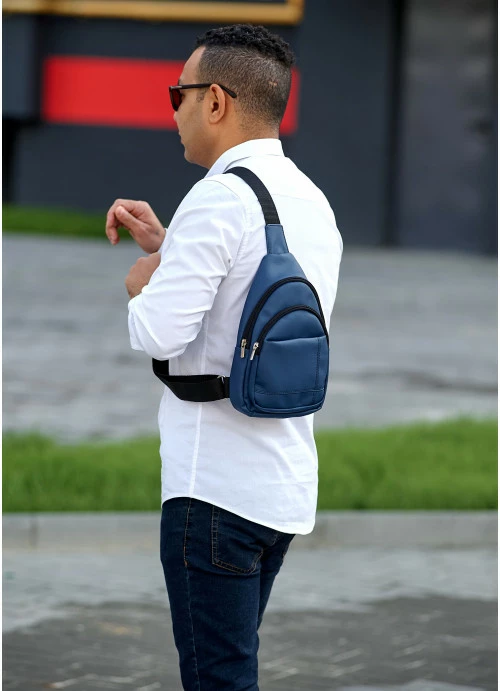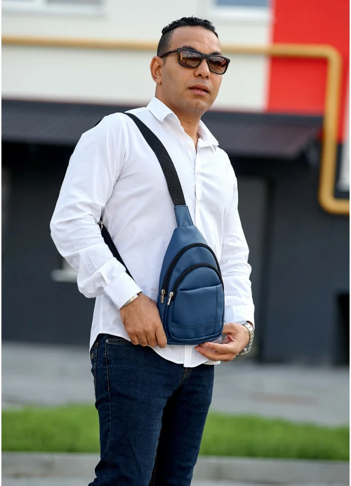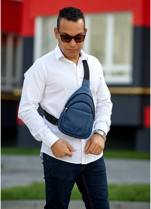 Мужская сумка слинг через плечо Sambag Brooklyn темно-синяя
