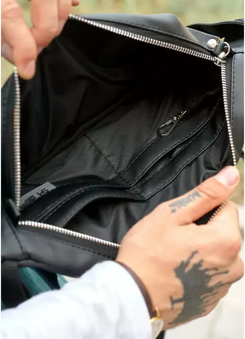 внутри три отделения, чтобы удобно разделить телефон, ключи, косметику и различные безделушки;
