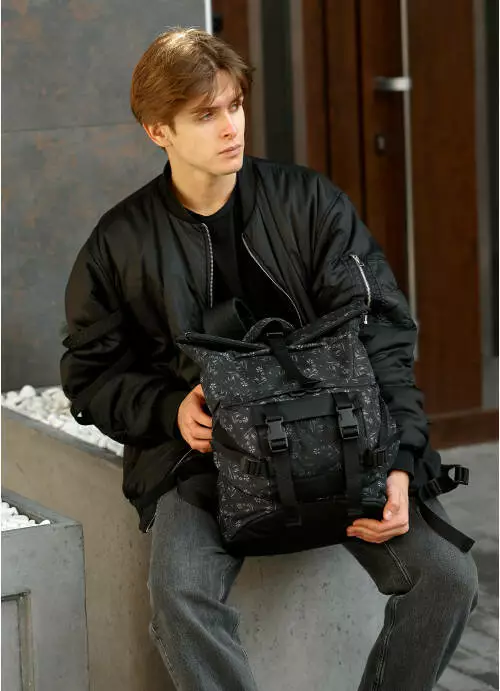 Мужской рюкзак ролл Sambag RollTop Double черный принт