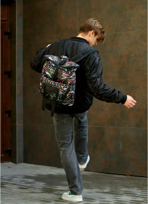 Фурнитура. Молнии из надежного пластика. Бегунки с фиксатором: рюкзак не откроется самостоятельно от нагрузок, а только рукой. Ременная лента с фастексами регулируется с увеличением высоты рюкзака. Основное отделение на молнии.
