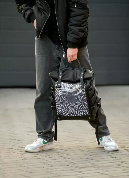 Мужской рюкзак Sambag RollTop Hacking черный принт "illusion"