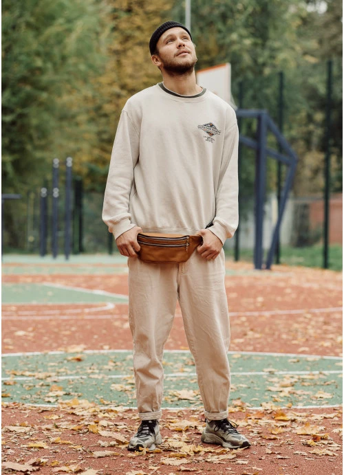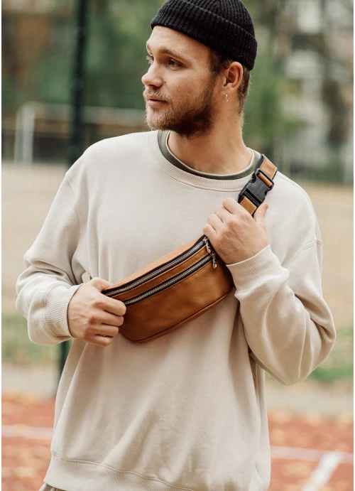 Мужская поясная сумка бананка кожаная Sambag Tirso BTS натуральная рыжая кожа