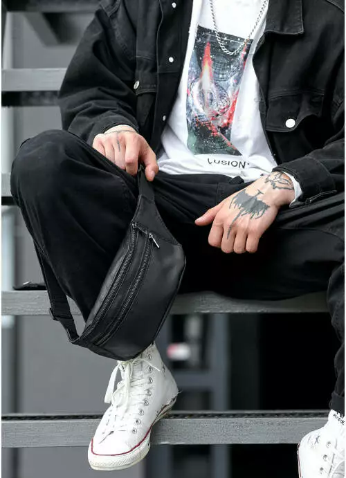 Поясная сумка бананка кожаная Sambag Tirso BTT черная