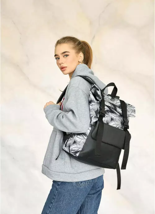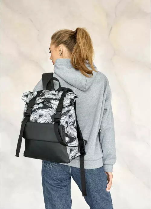 Рюкзак ролл Sambag унисекс RollTop Milton черный с принтом "Palm"