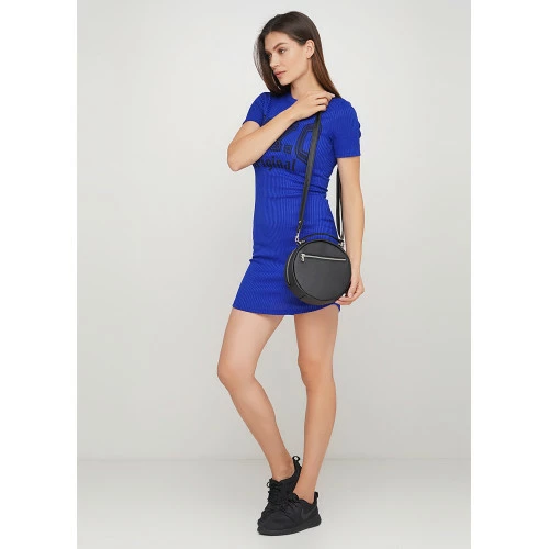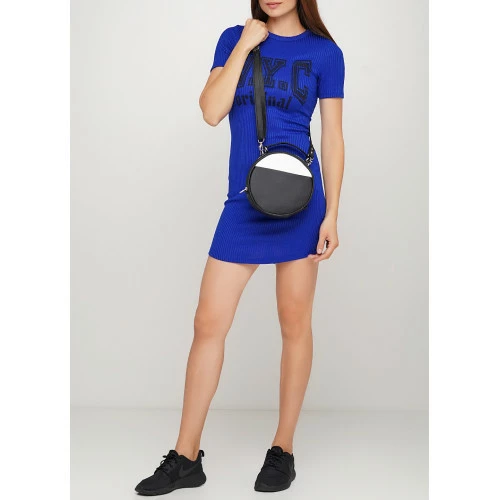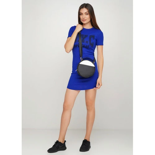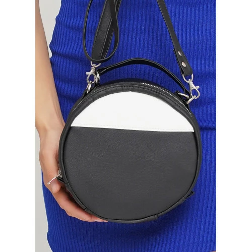 Женская круглая сумка Sambag Bale черная с белым