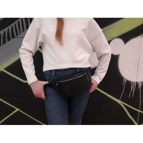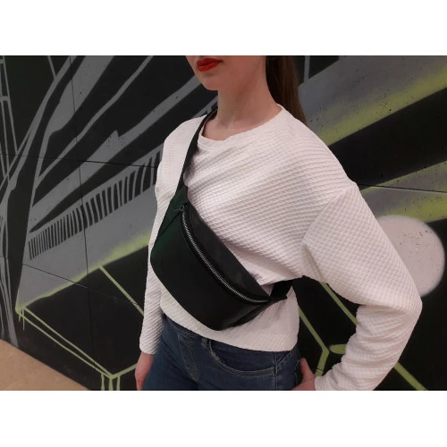 Женская поясная сумка бананка кожаная Sambag Tirso PSS черная