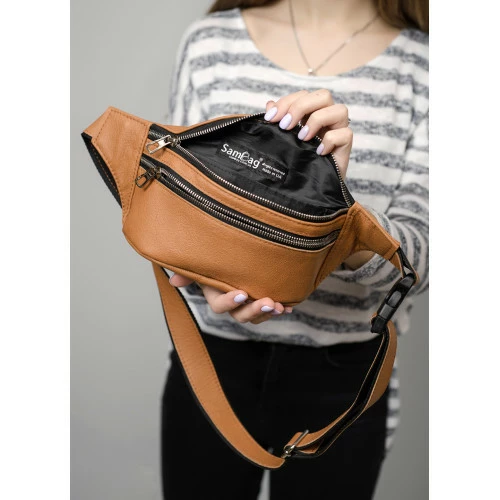 Сумочка из натуральной кожи на пояс, бананка Sambag - отличный
