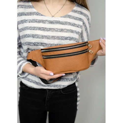 Женская поясная сумка бананка кожаная Sambag Tirso BTS натуральная рыжая кожа