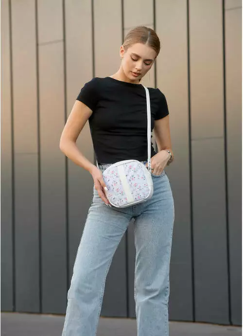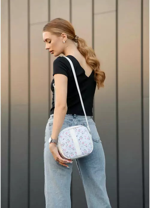 Женская сумка кроссбоди Sambag Bale белая с цветочным принтом