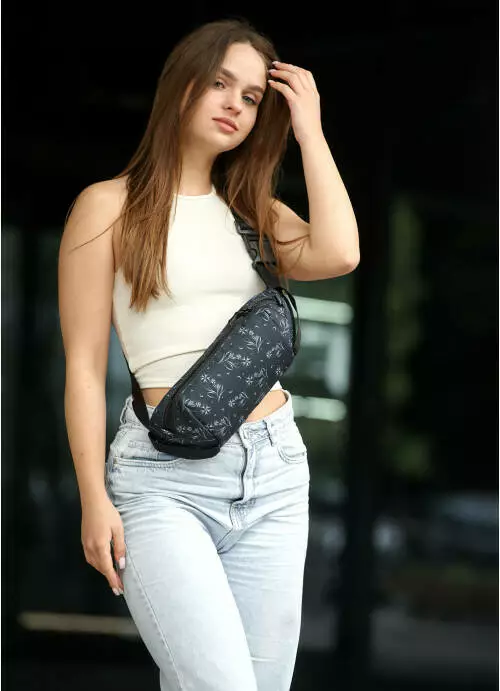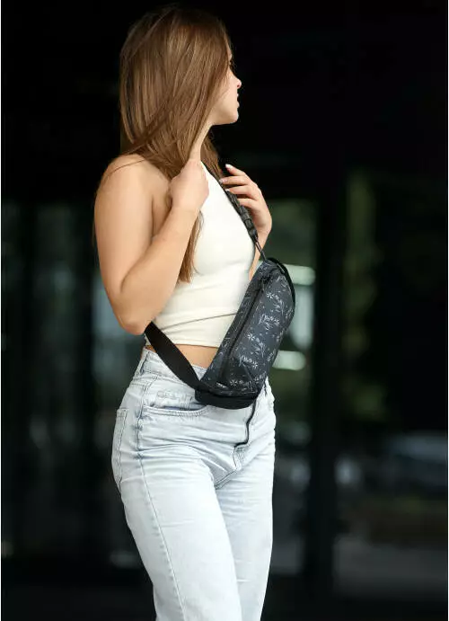Женская сумка на пояс бананка Sambag Holster MSH черный принт тканевая