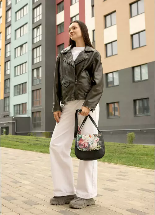 Женская сумочка Кросбоди Sambag Rose черная с цветочным принтом