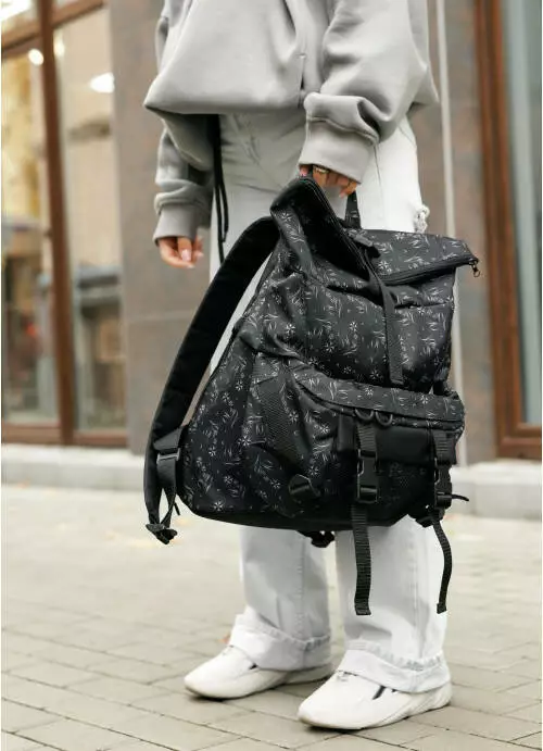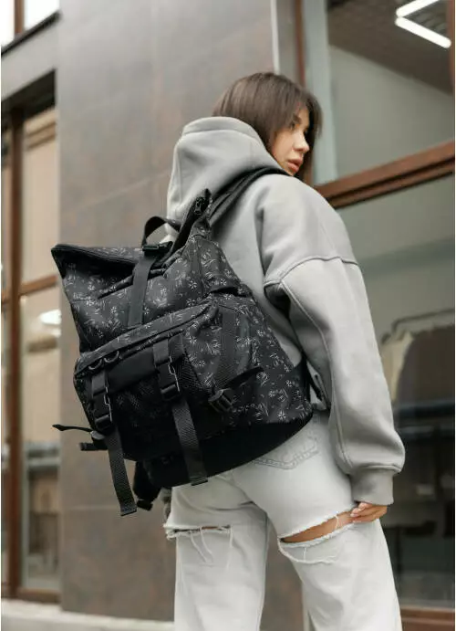 Женский рюкзак ролл Sambag RollTop Double черный принт