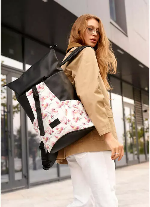 Женский рюкзак ролл Sambag RollTop X принт "Flowers"