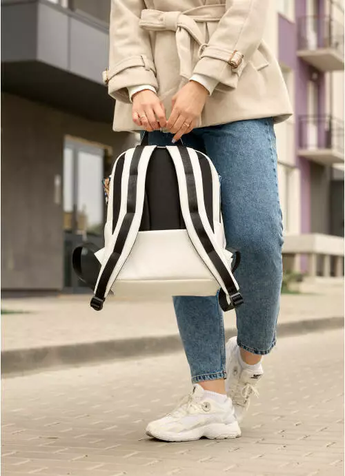 Удобство: Легко адаптируется к вашим потребностям благодаря регулируемой высоте рюкзака. Вентиляционная сетка на спине и плечевые ремни из экокожи в сочетании с вентиляционной сеткой надежно пришиты и усилены кожаными треугольниками в местах крепления для максимального комфорта.