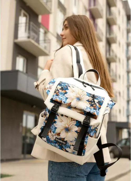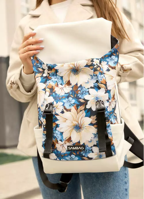 Женский рюкзак Sambag Aura белый с принтом "BLUE FLOWERS"
