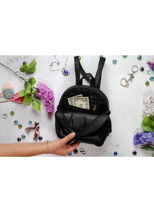Внутри прочный нетканый черный материал, с ним Вы можете не переживать, что положили в середину ключи, открытые ручки или карандаши и т.д., ведь он, в отличие от дешевой подложки, практически не рвется и легко чистится.