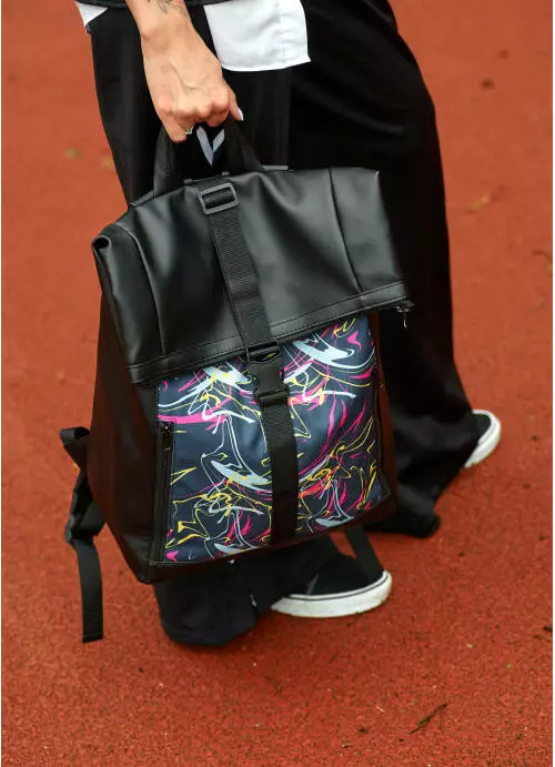 Женский рюкзак Sambag RollTop One черный с принтом "ABSTRACT"