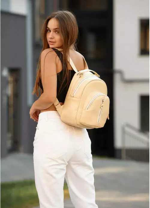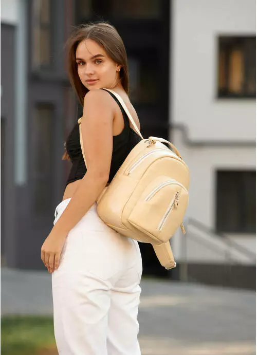 Функциональность: Снаружи рюкзака спереди один карман на молнии и дополнительный открытый карман внутри него. Также снаружи рюкзака маленький закрытый карман для карты, паспорта и т. д. Внутри рюкзака отдельное отделение под формат А4. С другой стороны внутри карман на молнии и один открытый карман. На спинке карман на молнии. Усиленное твердое дно.