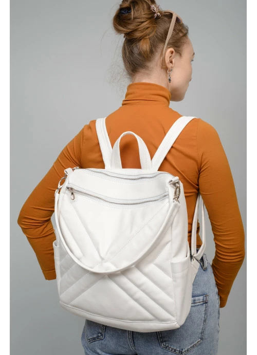 Женский рюкзак-сумка Sambag Trinity строченный белый