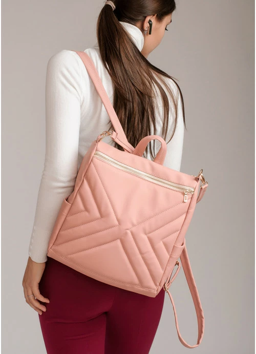 Женский рюкзак-сумка Sambag Trinity строченный пудра