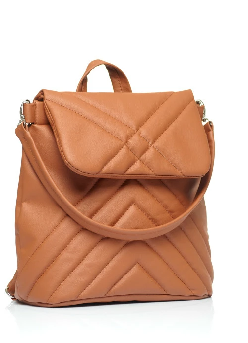Женский рюкзак-сумка Sambag Loftc стеганый коричневый