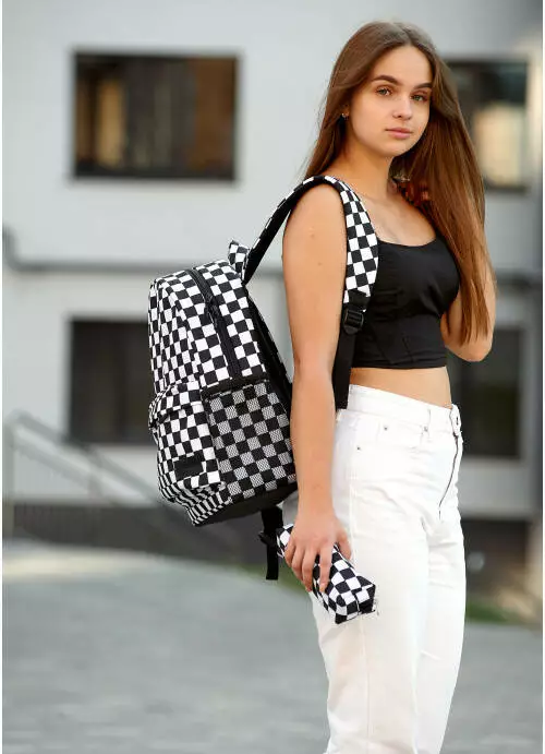 Женский рюкзак Sambag Brix PJT белый с принтом "Сhess"