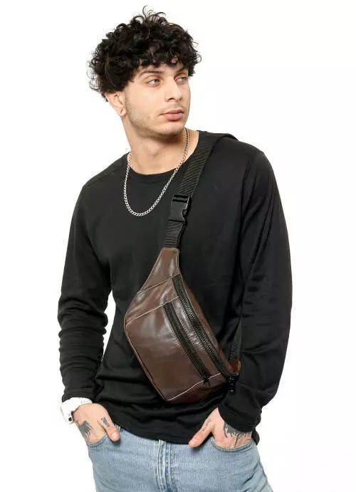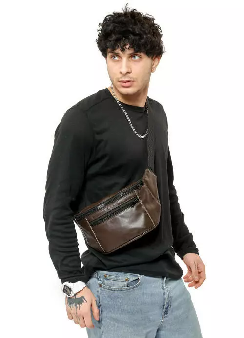 Чоловіча шкіряна сумка на пояс бананка Sambag Tirso Max шоколадна