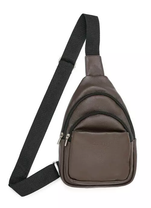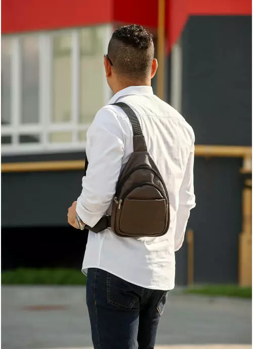 Чоловіча шкіряна сумка слінг через плече Sambag Brooklyn коричнева