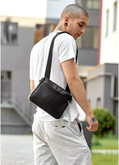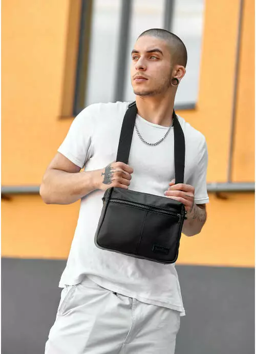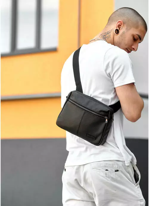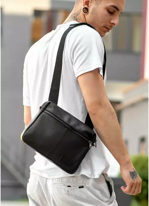 Чоловіча сумка месенджер з шкіри Sambag Makros чорна