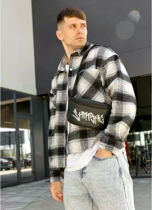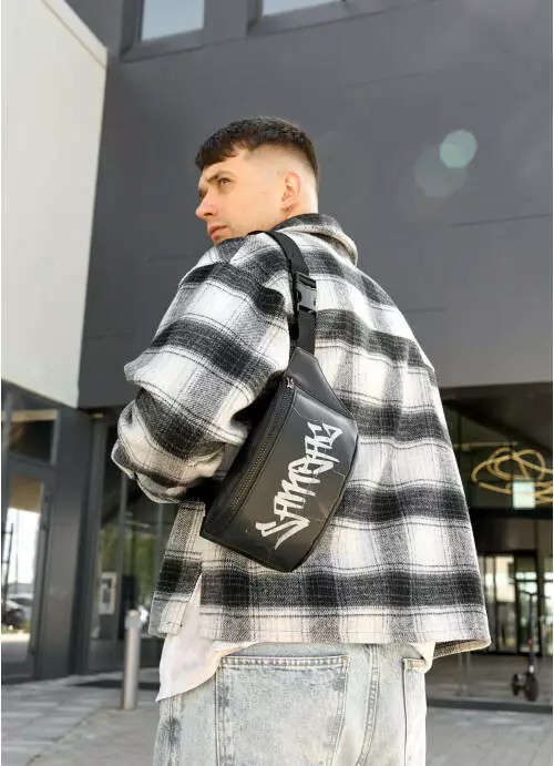 Чоловіча Сумка на пояс бананка Sambag Tirso MSH чорна з принтом "SAMBAG"