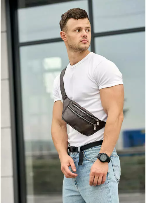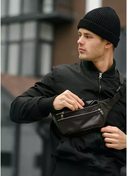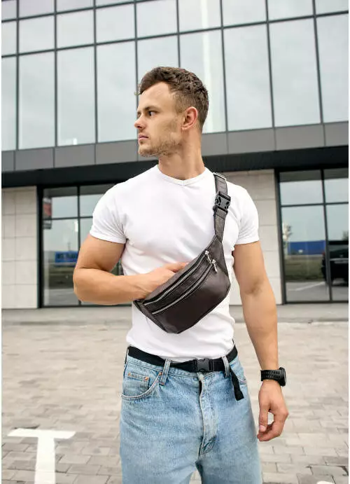 Сумочка из натуральной кожи на пояс, бананка Sambag - отличный