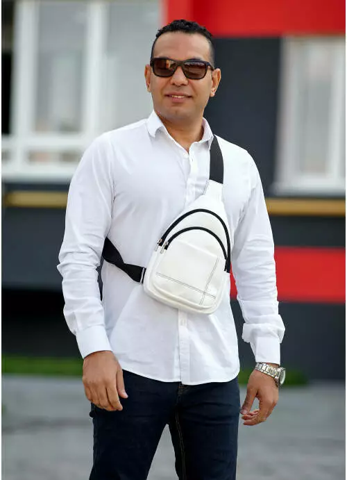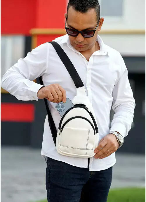 Чоловіча сумка слінг через плече Sambag Brooklyn біла