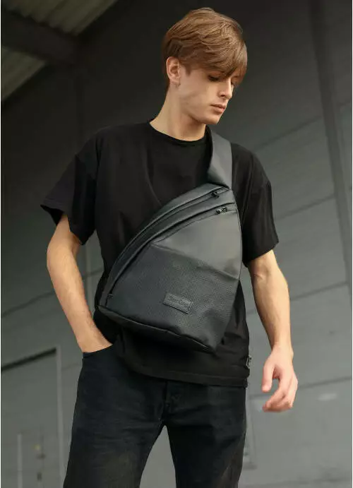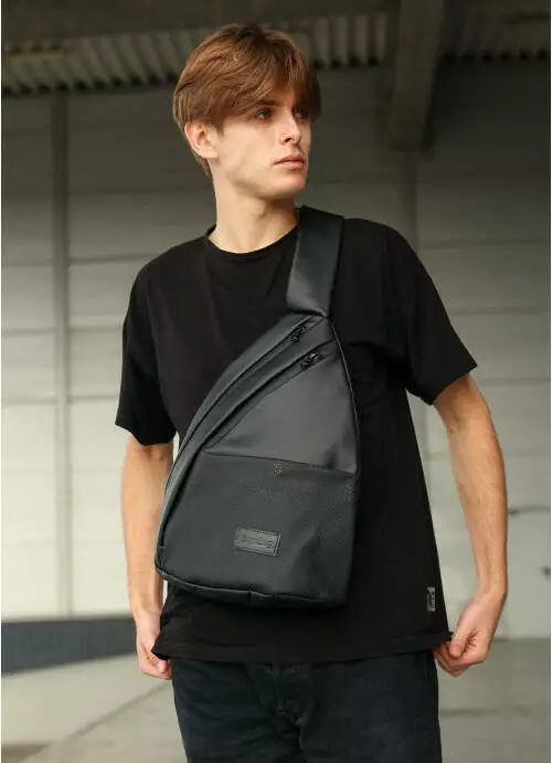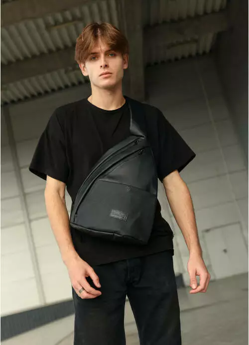 Чоловіча сумка слінг через плече Sambag Brooklyn чорна з перфорацією