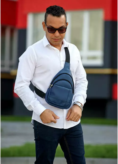 Чоловіча сумка слінг через плече Sambag Brooklyn темно-синя