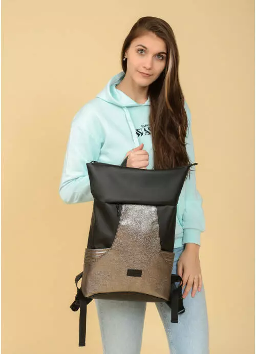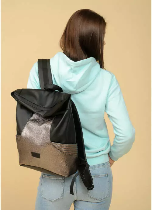 Рюкзак ролл Sambag RollTop MQN чорний з битим сріблом
