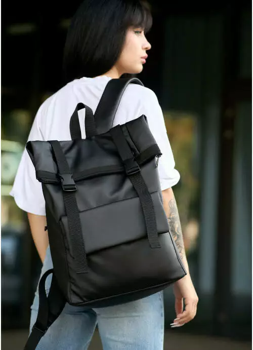 Рюкзак ролл Sambag унісекс RollTop Milton чорний з клапаном