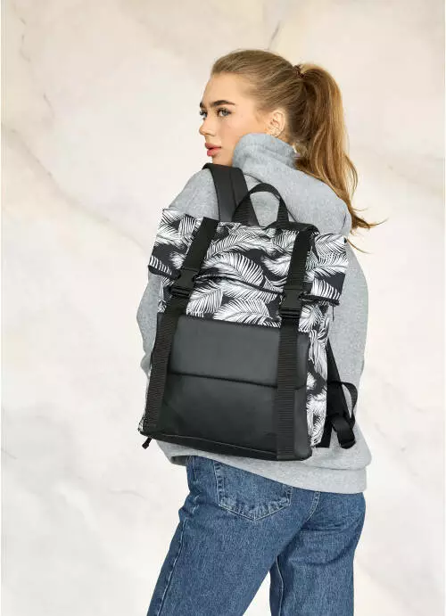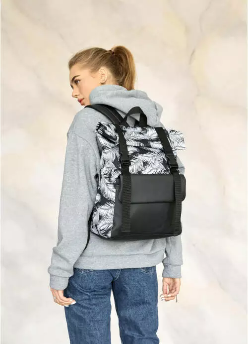 Рюкзак ролл Sambag унісекс RollTop Milton чорний з принтом "Palm"