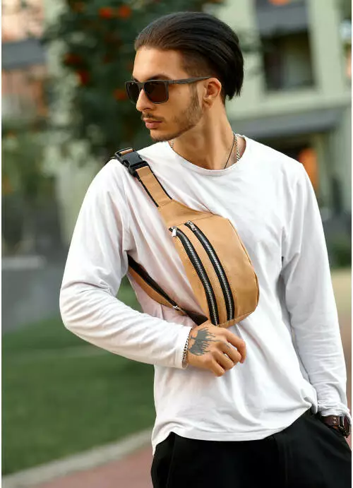 Сумочка из натуральной кожи на пояс, бананка Sambag - отличный