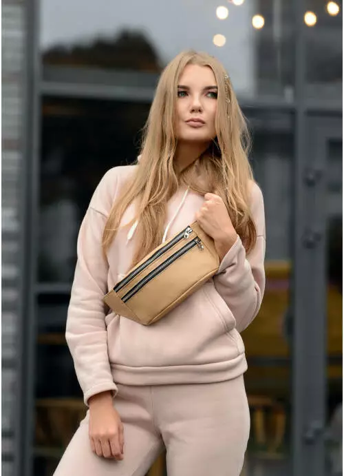 Сумка на пояс бананка шкіряна Sambag Tirso BTS Натуральна бежева шкіра
