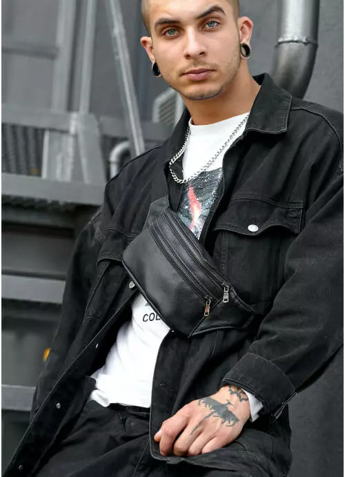 Сумка на пояс бананка шкіряна Sambag Tirso BTT чорнa