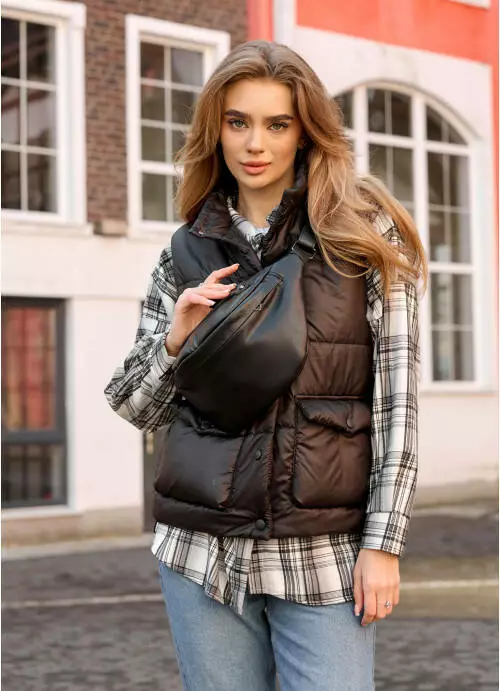 Велика жіноча поясна сумка-бананка Leoma City чорна