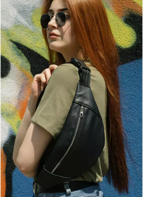 Жіноча шкіряна сумка на пояс бананка Sambag Soho BSS чорна